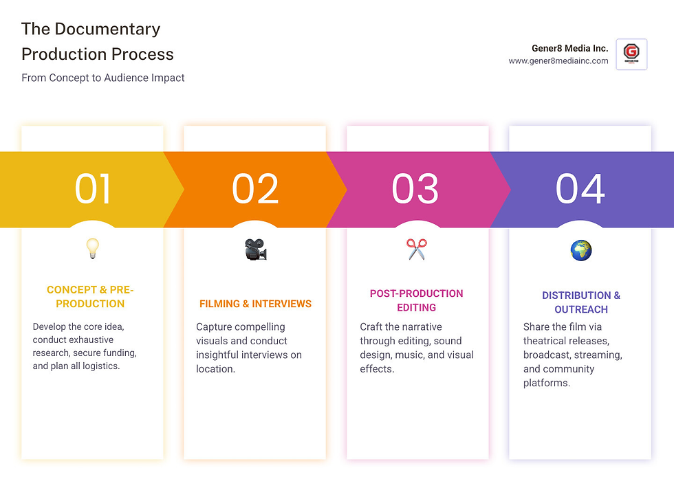 At Gener8 Media Inc., we understand that every story deserves to be told with passion and precision. Our commitment to leveraging cutting-edge technology, combined with our deep respect for the power of authentic narratives, means we're not just creating documentaries - we're crafting experiences that resonate long after the credits roll.